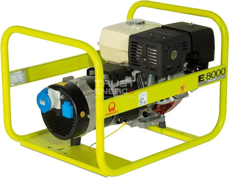 Бензиновый генератор Pramac E8000 3 фазы номинальной мощностью 6 кВт с двигателем Honda GX390 - отличный электроагрегат демонстрирующий уверенный приём нагрузки как резервный источник питания, так и основной.
