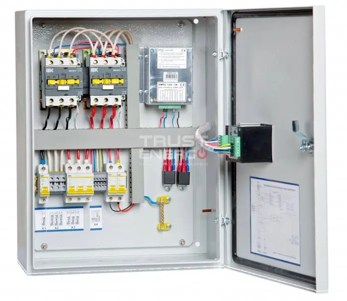 Блок автоматического ввода резерва (АВР) Траст-Энерго ИЭК 63 применяется для генераторных установок, которые используются в качестве резервного источника электрической энергии. Основной функцией АВР является коммутация источников электроэнергии (дизельные генераторы, бензиновые генераторы) с потребителями энергии.