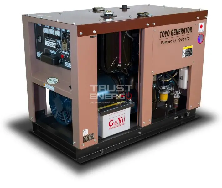 Дизельный генератор Toyo TG-12SPC номинальной мощностью 9 кВт с двигателем Kubota - отличный электроагрегат демонстрирующий уверенный приём нагрузки как резервный источник питания, так и основной.
