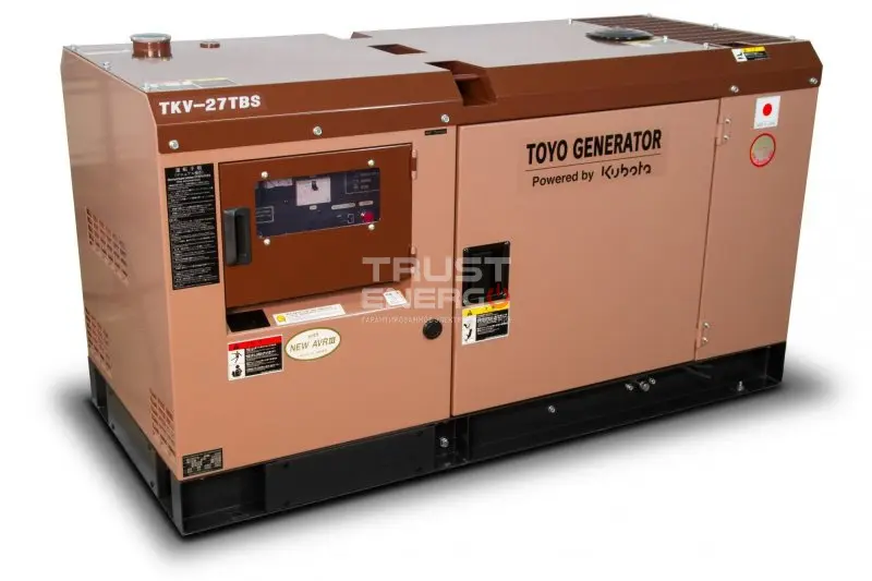 Дизельный генератор Toyo TKV-27TBS с АВР номинальной мощностью 16 кВт с двигателем Kubota - отличный электроагрегат демонстрирующий уверенный приём нагрузки как резервный источник питания, так и основной.
